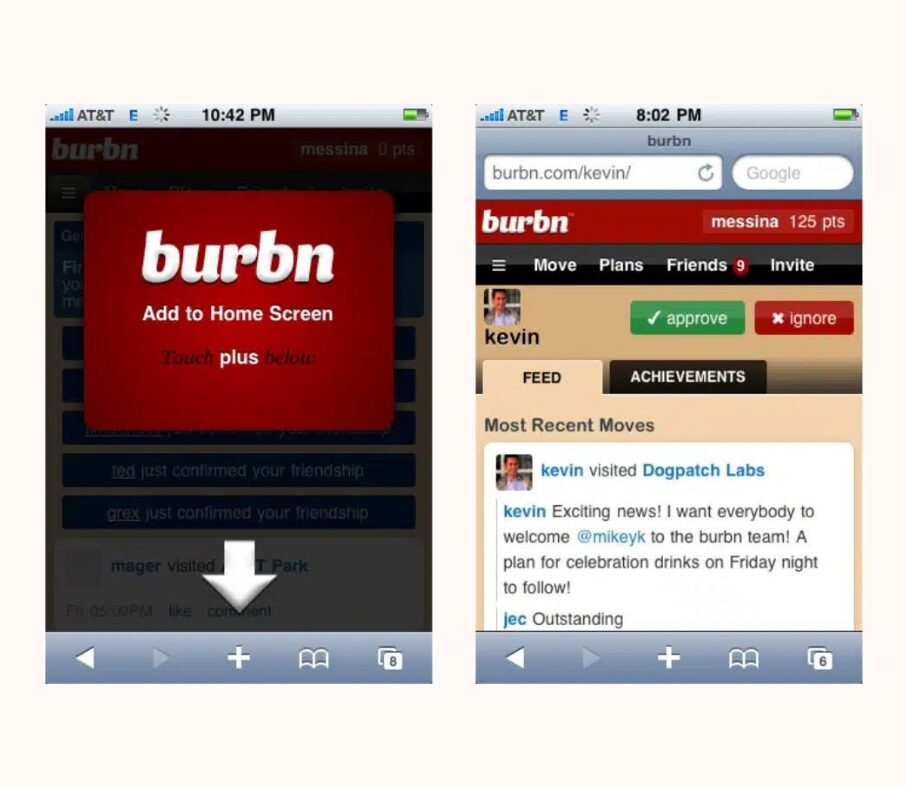 Першим проєктом засновників мережі Кевіна Сістрома та Майка Крігера став додаток Burbn. На відміну від Instagram публікація та обмін фотографіями не були головною особливістю застосунку: в ньому можна було відстежувати, які бари відвідують друзі, або планувати зустріч з ними в закладі. Мережа передбачала систему винагород, за якою користувачі отримували бали за відвідування друзів та публікацію фотографій з ними. До слова, функція додавання геолокації до світлин є спадком Burbn.