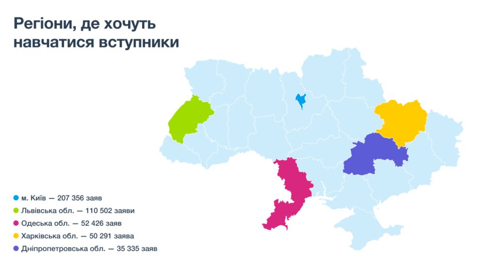 Цього року приблизно 50% вступників – зі Львова та Львівської області, а решта 50% – з інших регіонів України. Хоча переважають вступники із західних областей, а на першому курсі університету навчатимуться студенти з усіх куточків країни, зокрема й з Криму.