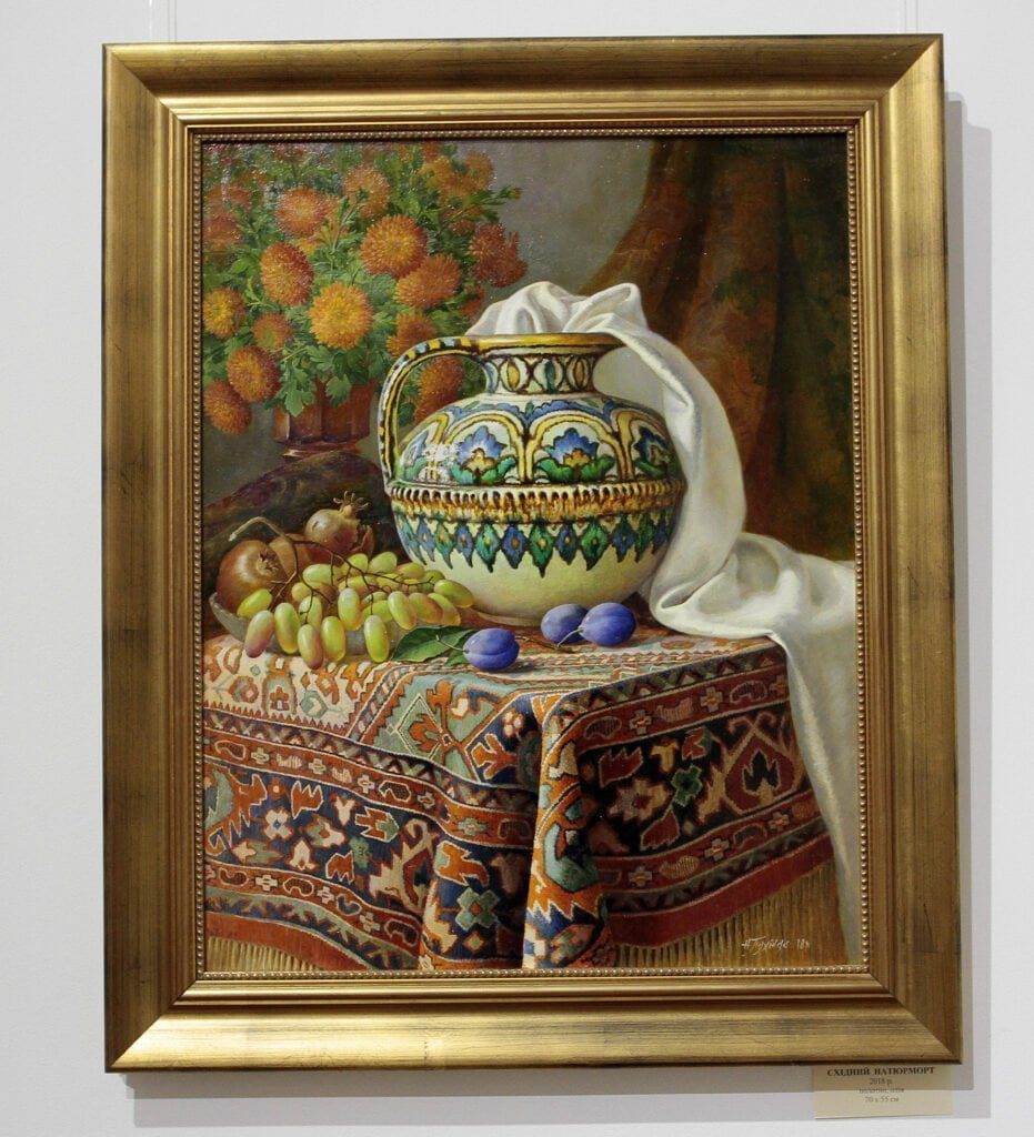 У великій залі Дому Франка до 14 лютого триватиме виставка «Таємниці речей» Наталії Пухінди. Мисткиня працює в різних жанрах: живопис, графіка, скульптура, кераміка. Її вважають королевою натюрмортів, які вона й представляє на цій виставці.