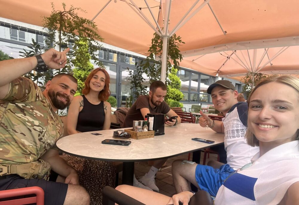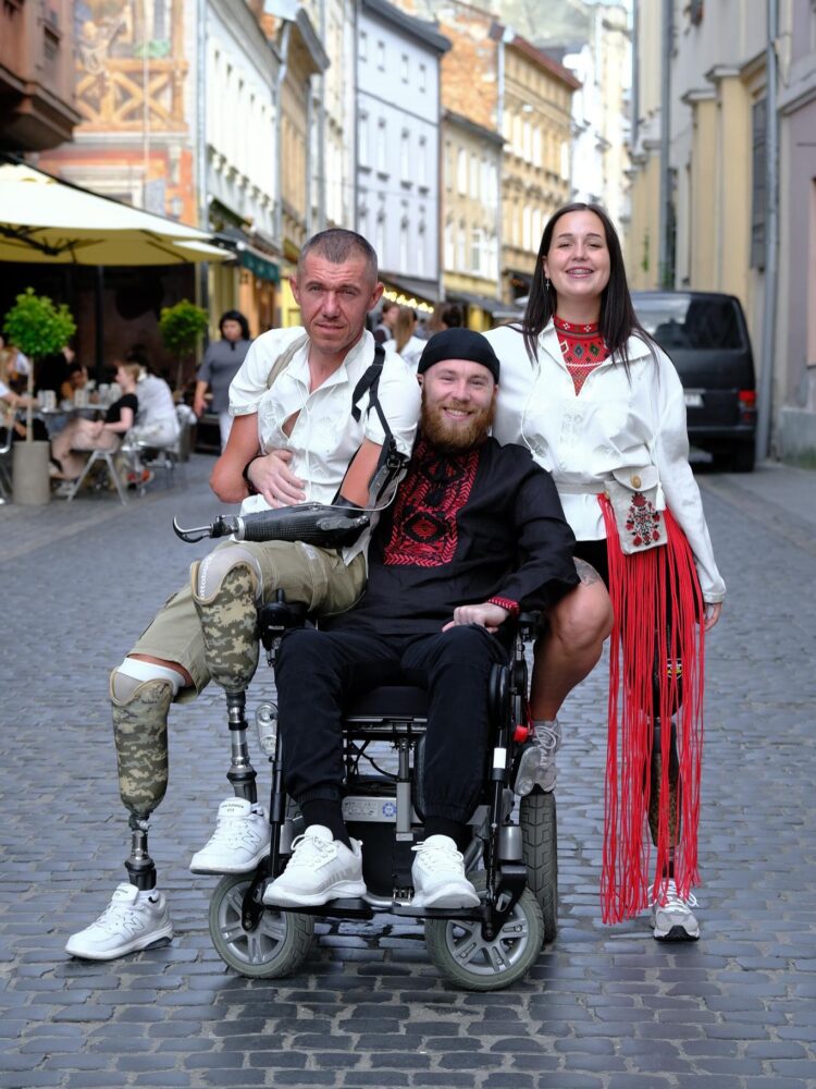 Перші пацієнти, з якими япрацювала як менторка. Вони залишилися в моєму серці. У хлопців були важкі травми, вони тривалий час були на реабілітації в нашому центрі. Серед них танкіст Ілля Пелипенко, доброволець Євгеній Шваб. Згодом з Євгеном ми брали участь у модних показах в Берліні, Києві та Львові.