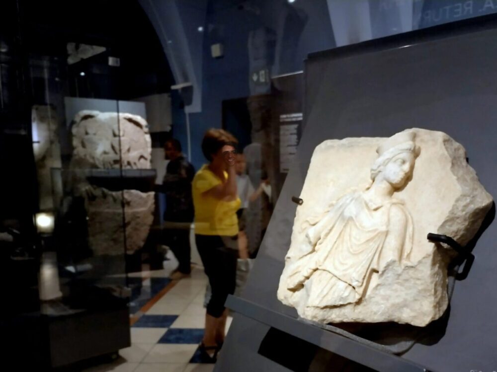 «В експозиції домінують великі кам’яні предмети, гарно освітлені та подані, хоча й ховаються в тіні золота. За цими намогильними стелами простежується історія конкретних людей – з Босфору, Неаполя Скіфського, Херсонеса. Коли досліджували залишки цих некрополів, знайшли серію, яка, як виявилося, належала одній родині. Це три брати, які загинули за свободу Херсонеса. Їхні батько і мати дожили до старості, їхні надмогильні стели теж збереглися. За цим починаєш відчувати історію міста, півострова, людей, які переживали такі самі моменти, що й ми тепер», – захоплено розповідає Юрій Політович.