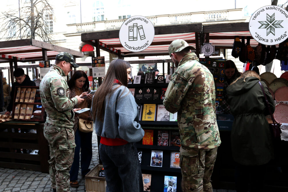 Завітав екскомандир 103-ї бригади ТрО Валерій Курко. До речі, ветеран, засновник видавництва «Майстерня історій «Мрієлов» Андрій Каспшишак, який є постійним учасником ярмарку, служив саме в цій бригаді. Було дуже багато людей. Вдячні усім за підтримку!
