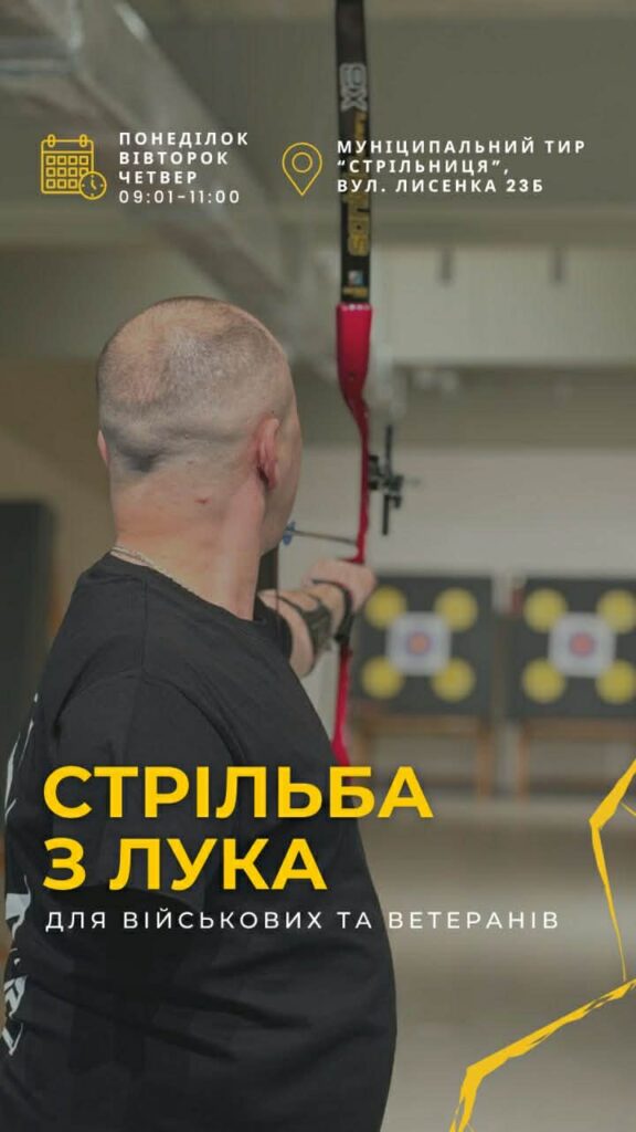 Стрільба з лука має реабілітаційний і терапевтичний ефект, зокрема сприяє розвитку концентрації, самоконтролю та емоційної стабільності, що є надзвичайно важливо для адаптації ветеранів. Тренування відбуваються у понеділок, вівторок і четвер з 09.00 до 11.00.