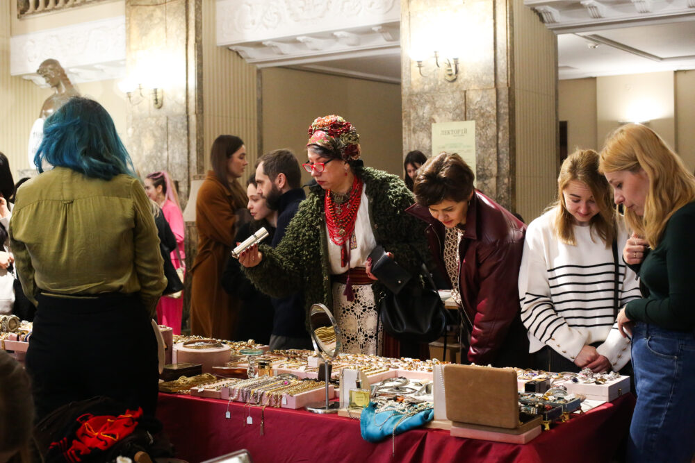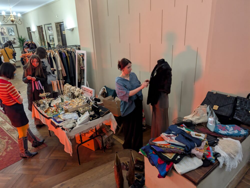 Хоч у неділю погода не тішила львів’ян сонцем й теплом, всередині Театру ім. Марії Заньковецької було по-весняному затишно. На вінтажному ярмарку була всяка всячина: прикраси, аксесуари, платівки, артбуки, посуд, ляльки. А на стійках висів різноманітний одяг, серед якого можна було знайти жакет Giorgio Armani або ж краватки Hermes.