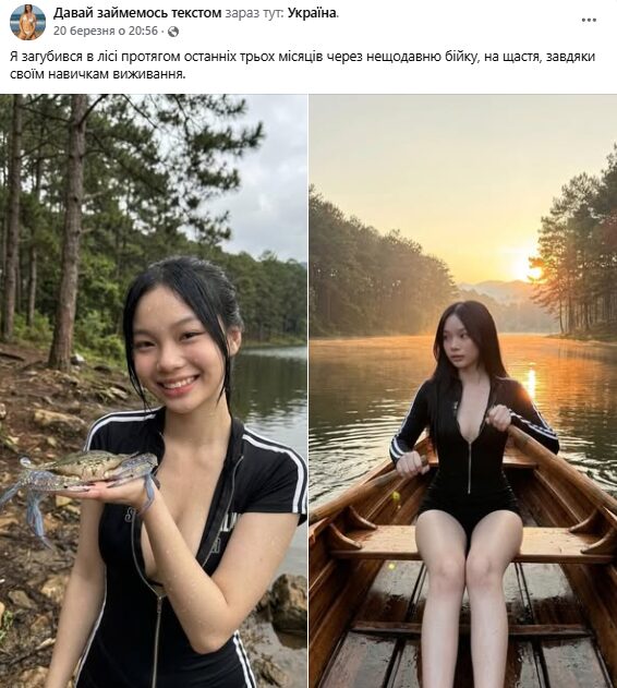 Не так давно така прикрість трапилася з фейсбук-сторінкою проєкту «Давай займемось текстом», який за допомогою дотепних дописів та світлин навертав людей на шлях українізації. Тепер тут замість просвітницького матеріалу – жінки, які демонструють свої бікіні або ж улов крабів, як на цьому скриншоті.