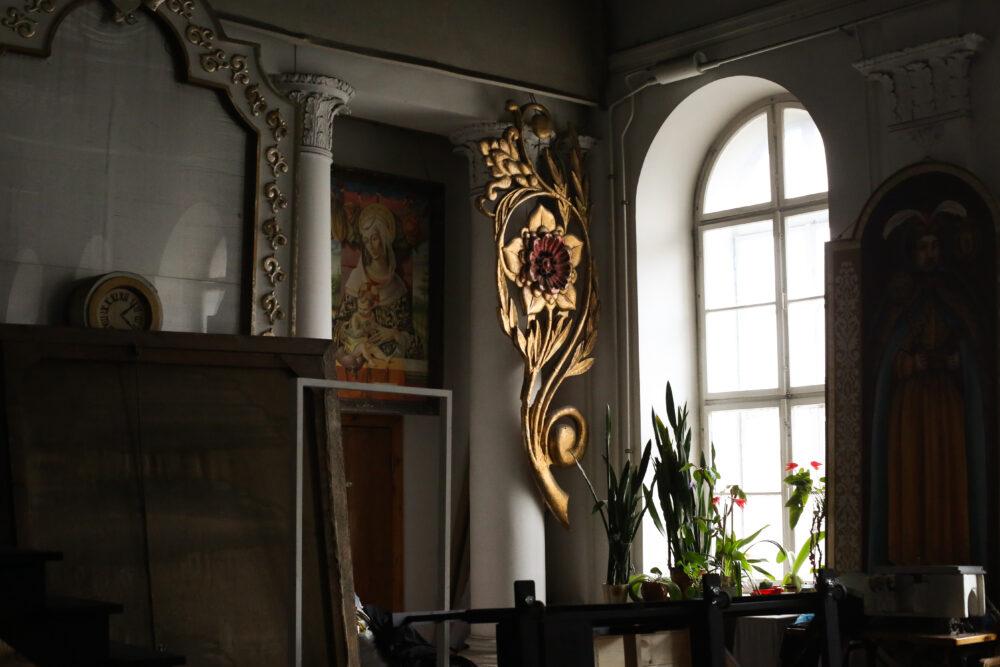 Після вступного слова про театр Скарбека потаємними коридорами, який працівники відкрили зовсім недавно, ми виходимо на другий поверх у Блакитну залу. Деякі глядачі тут були на виставах «Паливо» та «Кайдаші».