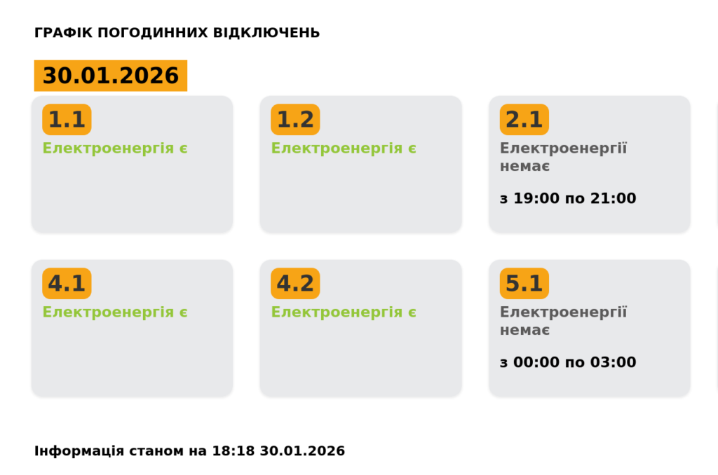 Львівобленерго опублікувало оновлений графік погодинних відключень для Львова та області на 30 січня.
