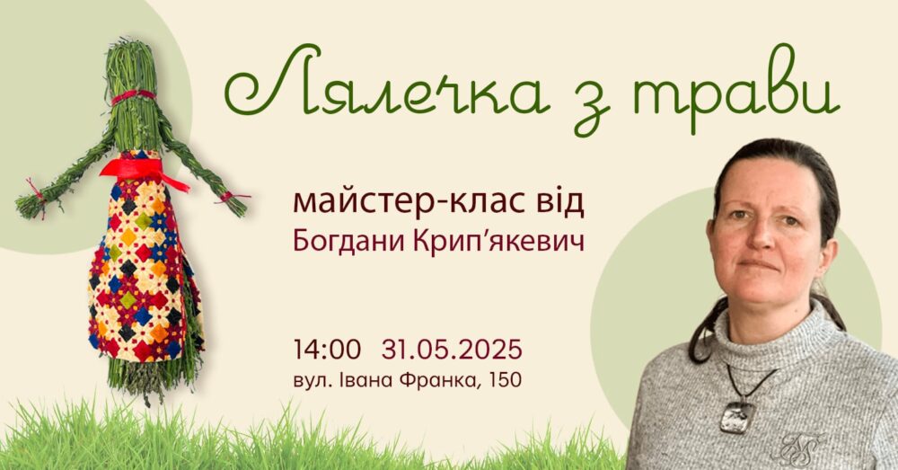Наукова працівниця та реставраторка Дому Франка Богдани Крип’якевич навчить дітей виготовляти іграшки, якими бавилися сотні років тому. Лялька з трави може стати вірною берегинею і пахучою оздобою домівки.