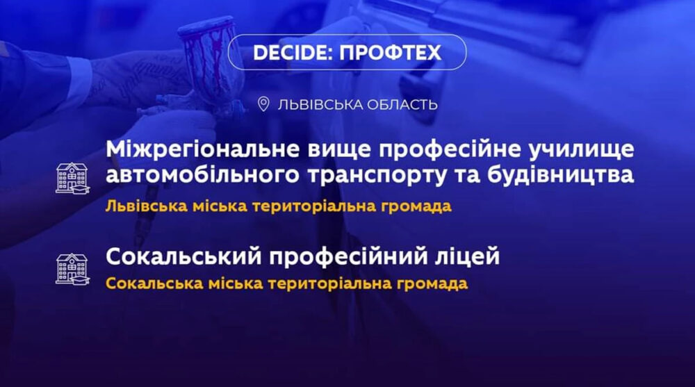 Державний професійно-технічний навчальний заклад «Сокальський професійний ліцей» та львівський ДПТНЗ «Міжрегіональне вище професійне училище автомобільного транспорту та будівництва» відібрані для участі в напрямку «DECIDE: ПРОФТЕХ».