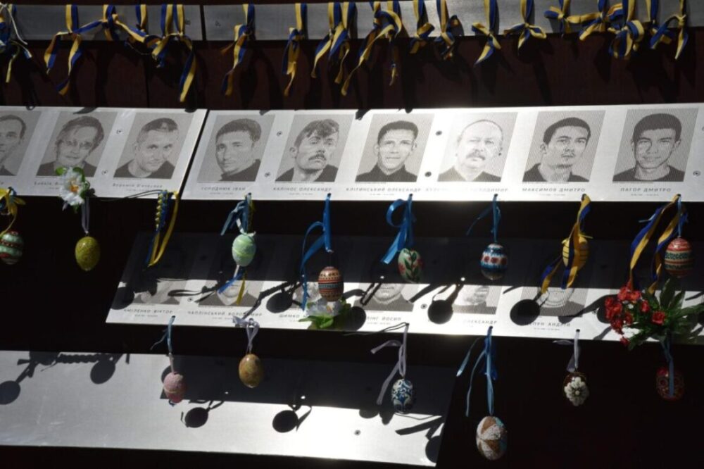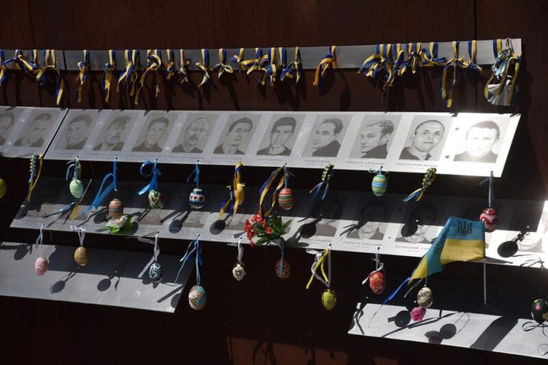 На меморіалі під портретами заглибних учасників Революції Гідності повісили 107 писанок, частина з яких збережена з минулих років.