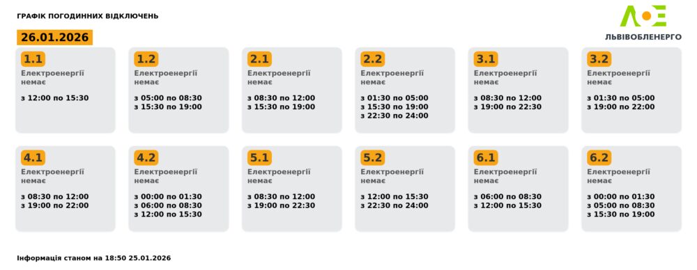 Внаслідок обмеження застосування електроенергії на Львівщині діятимуть графіки погодинних знеструмлень, повідомили у Львівобленерго.