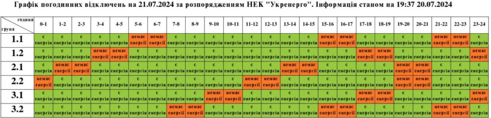 21 липня графіки погодинних відключень електроенергії застосовуватимуть протягом усієї доби, повідомляє Львівобленерго.