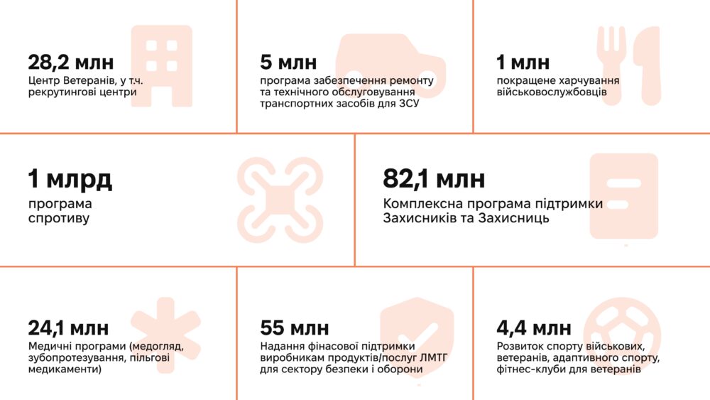 - комплексну програму підтримки захисників і захисниць 82,1 млн грн;