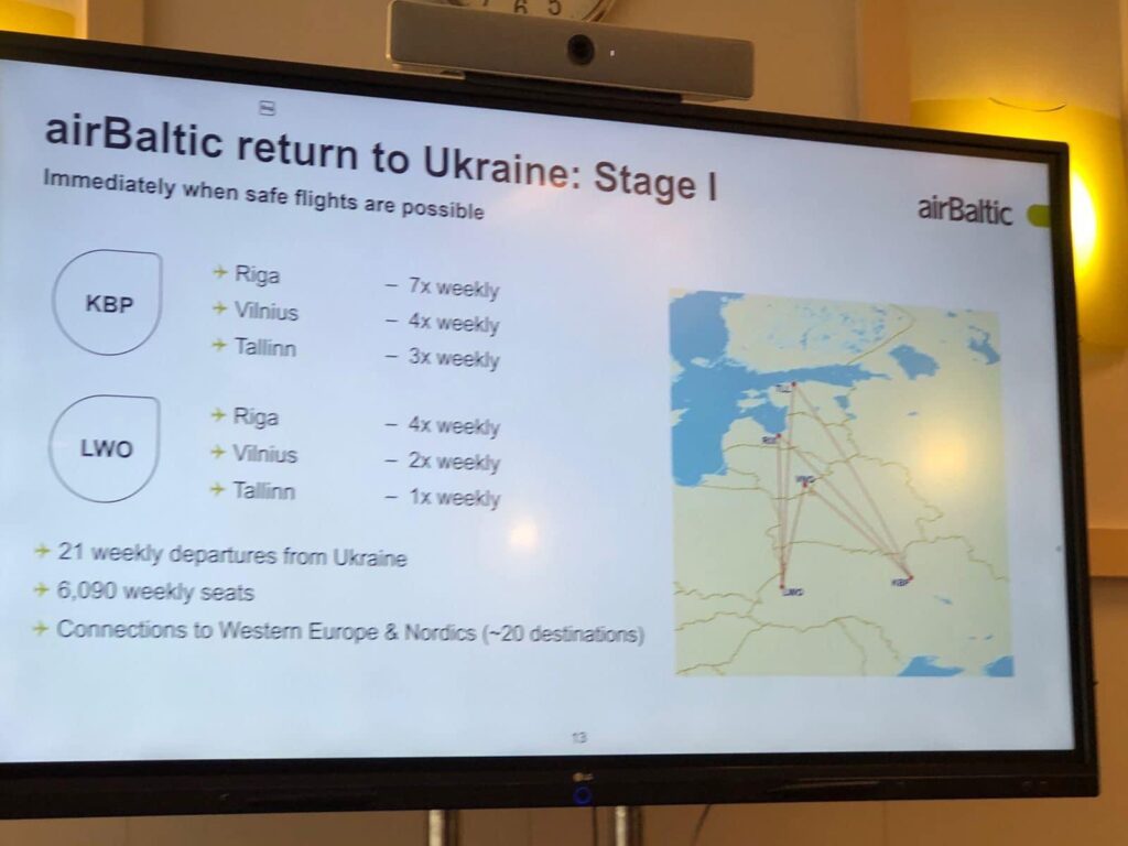 Латвійська авіакомпанія airBaltic розробила план відновлення польотів до України з країн Балтії, щойно це стане безпечним.