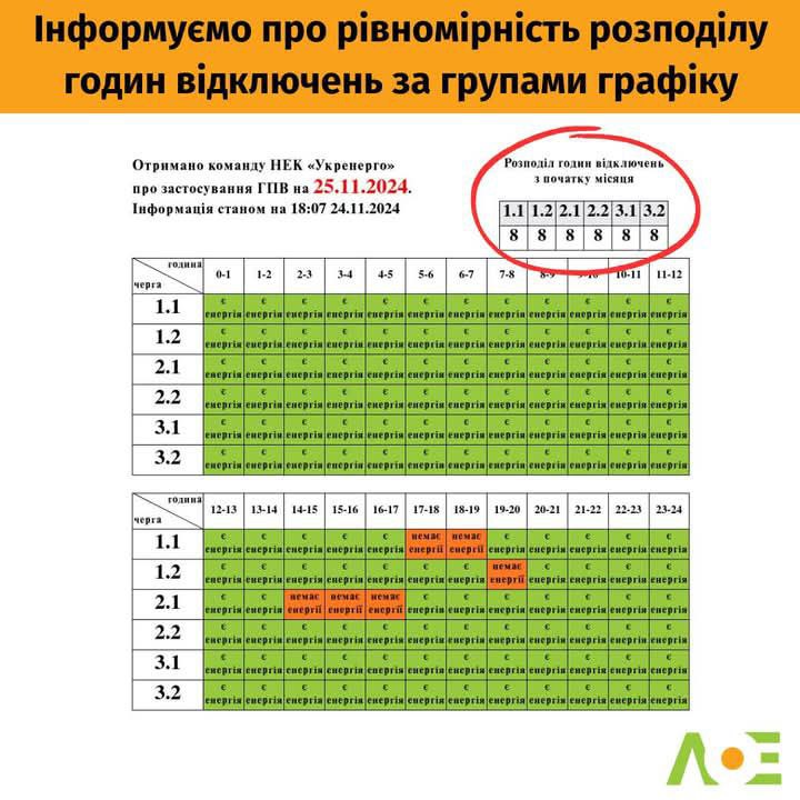 У щоденних графіках відключень також вказують і розподіл годин відсутності електроенергії за групами з початку місяця. Це дозволяє контролювати рівномірність розподілу черг.