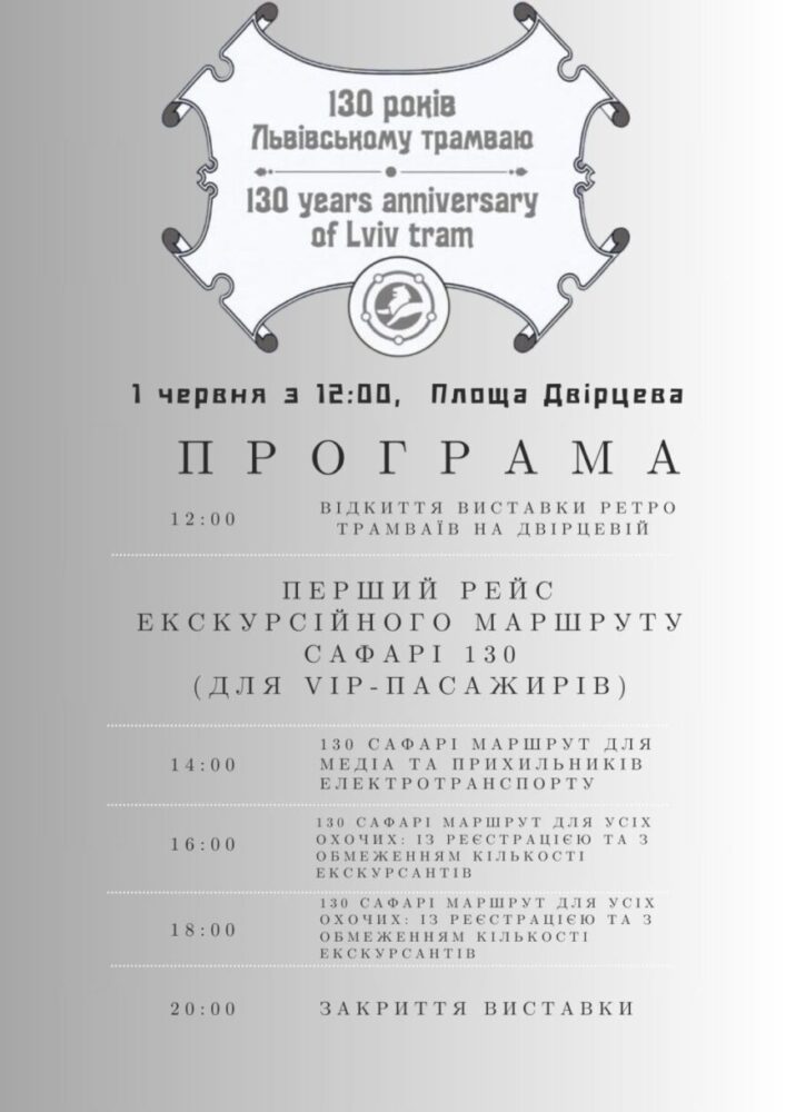 З нагоди запуску електричного трамваю Львівелектротранс анонсує святкову програму на 1 червня, зокрема виставку ретровагонів на площі Двірцевій, повідомляє Львівська міська рада.
