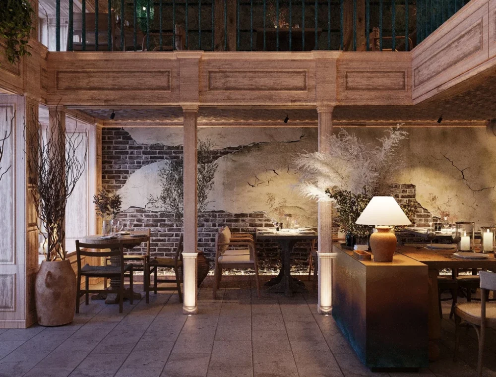 Ресторан поділили на невеликі зали й затишні зони, що підтримує культуру спільних трапез, водночас дозволяючи гостям зберігати приватність.