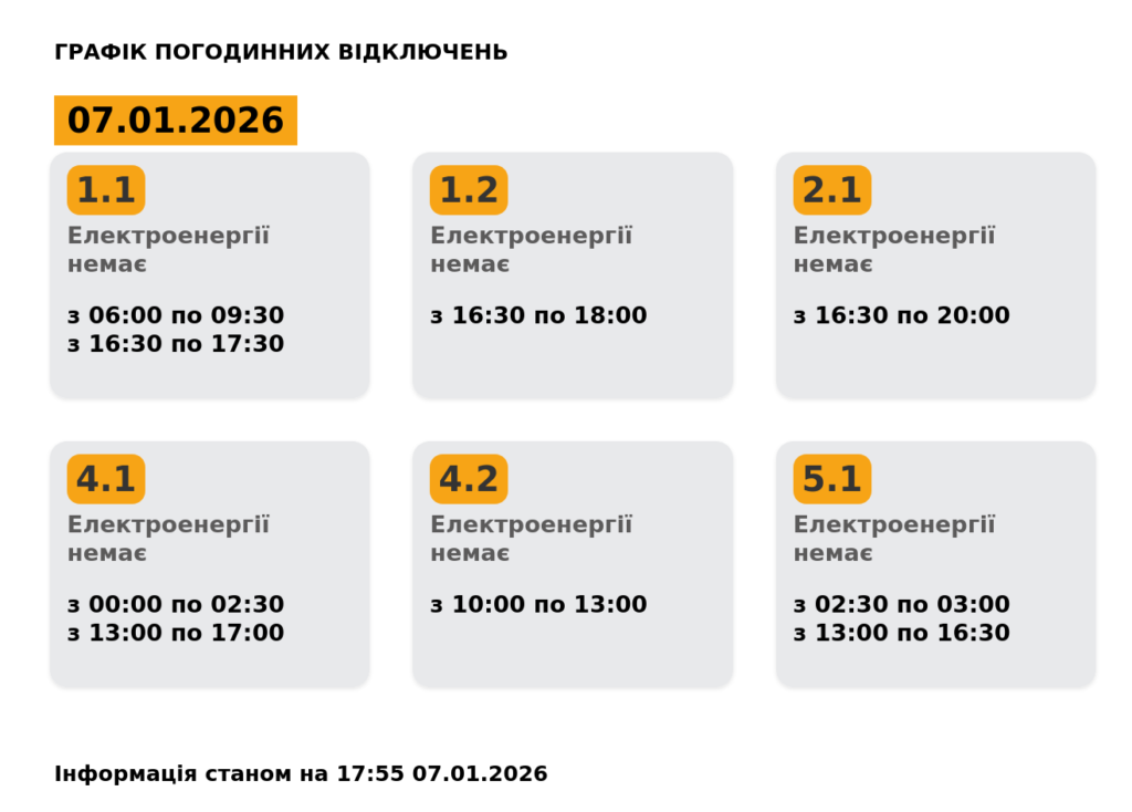 У Львівобленерго опублікували оновлення у графіку погодинних знеструмлень на 7 січня.