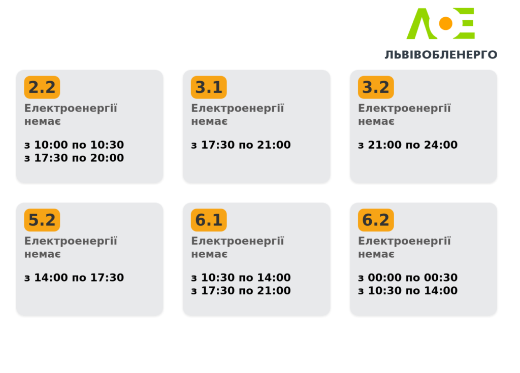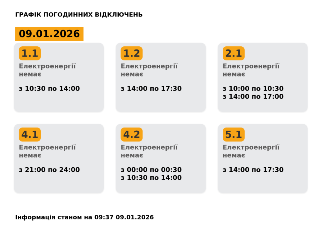 Львівобленерго оприлюднило оновлення у графіку погодинних знеструмлень на 9 січня.
