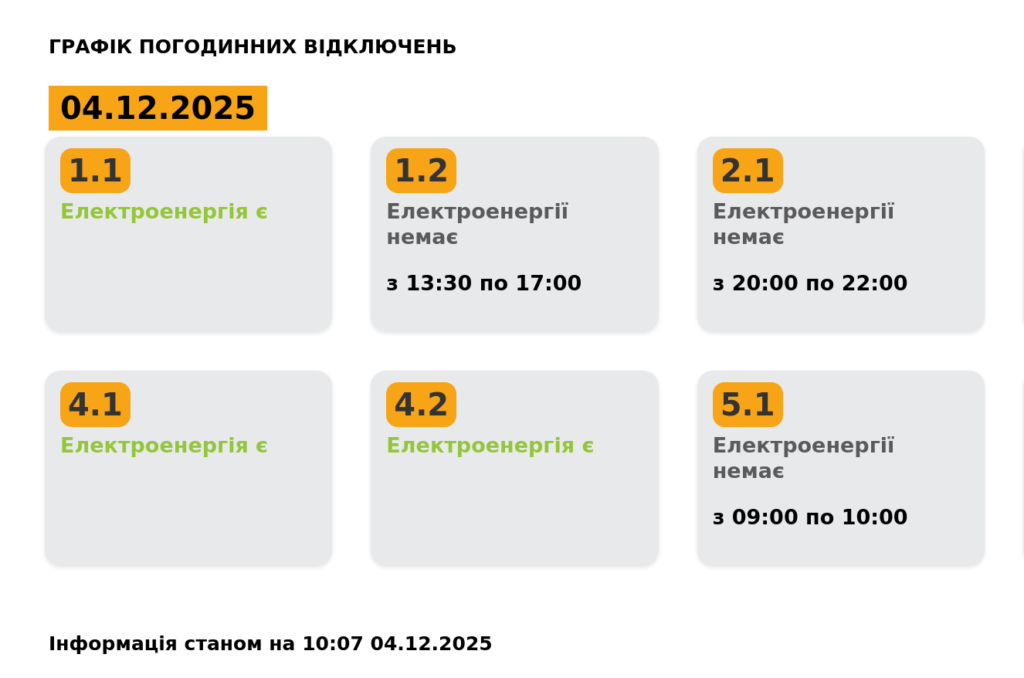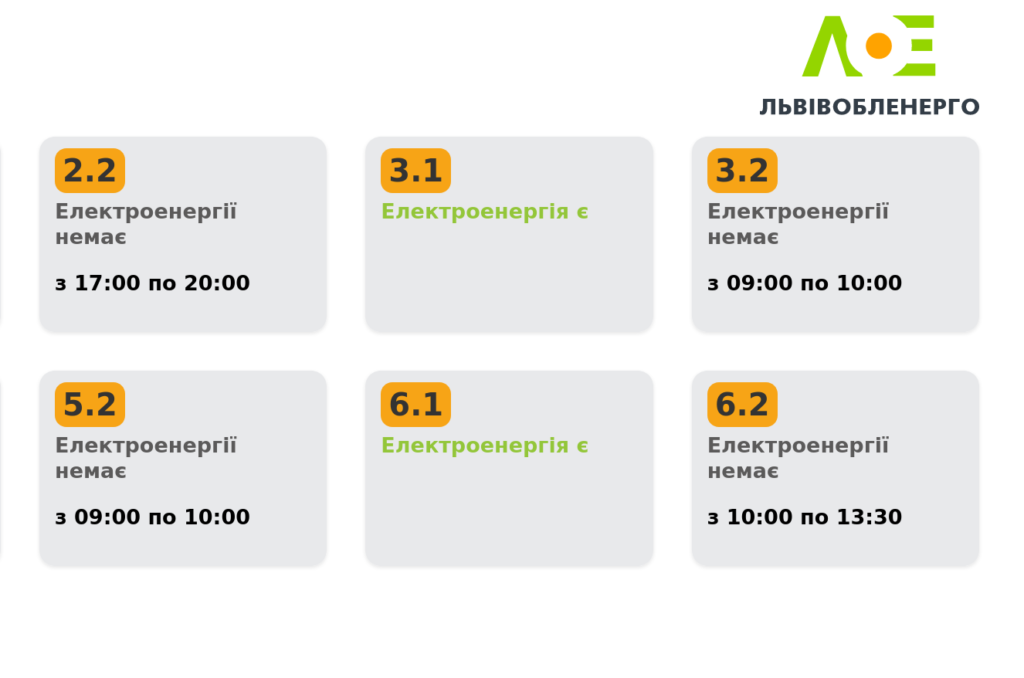 Львівобленерго оновило графік погодинних відключень світла на 4 грудня. Станом на 10:07, для п’яти груп скасували знеструмлення.