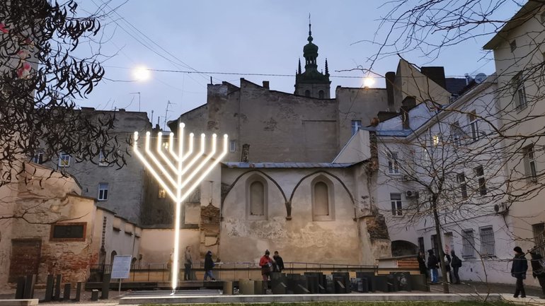 Нагадаємо, що єврейська громада встановила ханукію у меморіальному комплексі «Простір синагог».