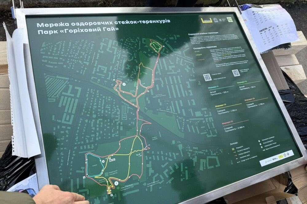 У львівському парку «Горіховий гай» розпочали маркування оздоровчих стежок – теренкурів. Тут запрацює п’ять стежок трьох рівнів складності: