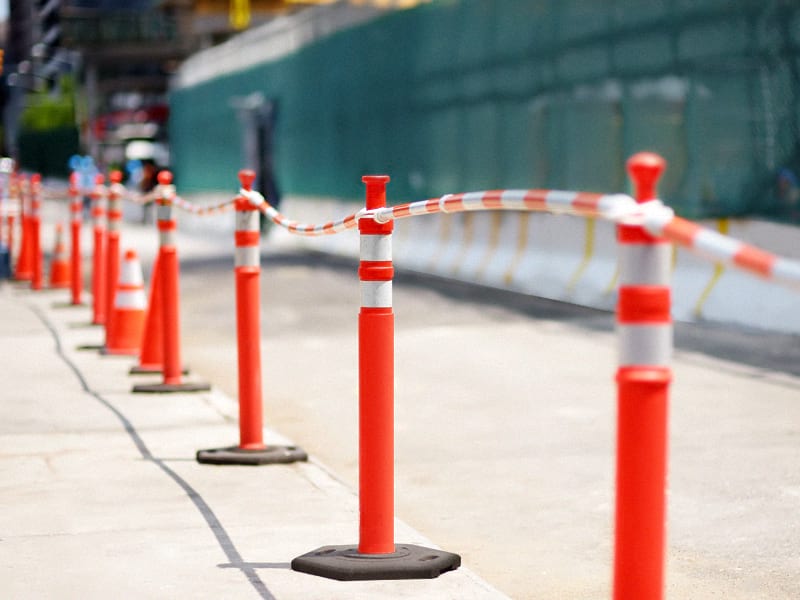 Делініатори ( помаранчеві пластикові стовпці)встановлюють для того, щоб зменшити хаотичне паркування автомобілів, яке часто блокує рух трамваїв.