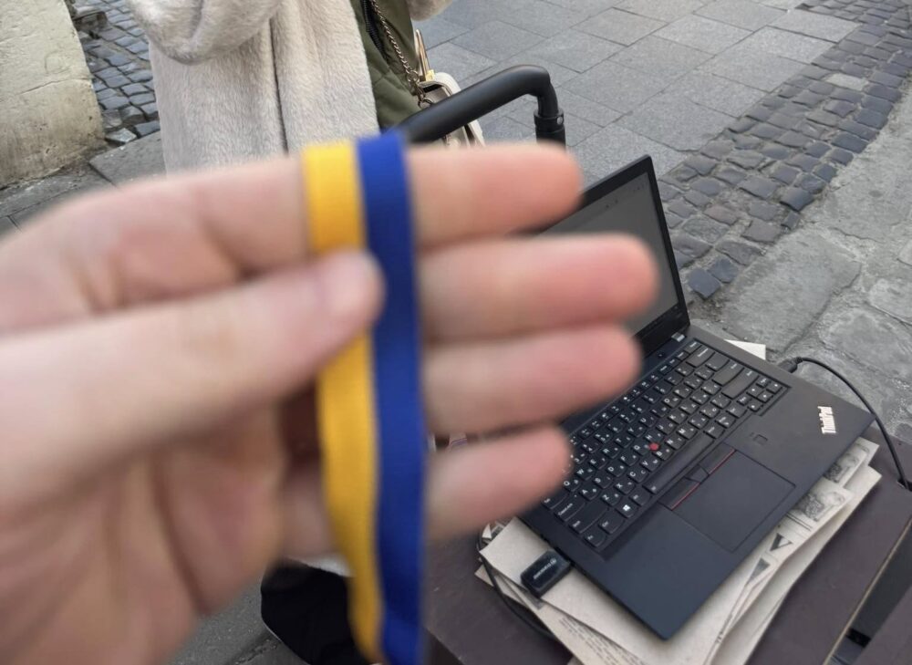 У центральній частині міста люди продають синьо-жовті стрічки за символічну суму. Євген Бойко, керуючий справами виконкому ЛМР, повідомив, що написав заяву у поліцію щодо шахрайства та маніпуляцій національною символікою. Також він додав, що через журналістські розслідування та протидію міста продавці якийсь час не з’являлися на площі Ринок.