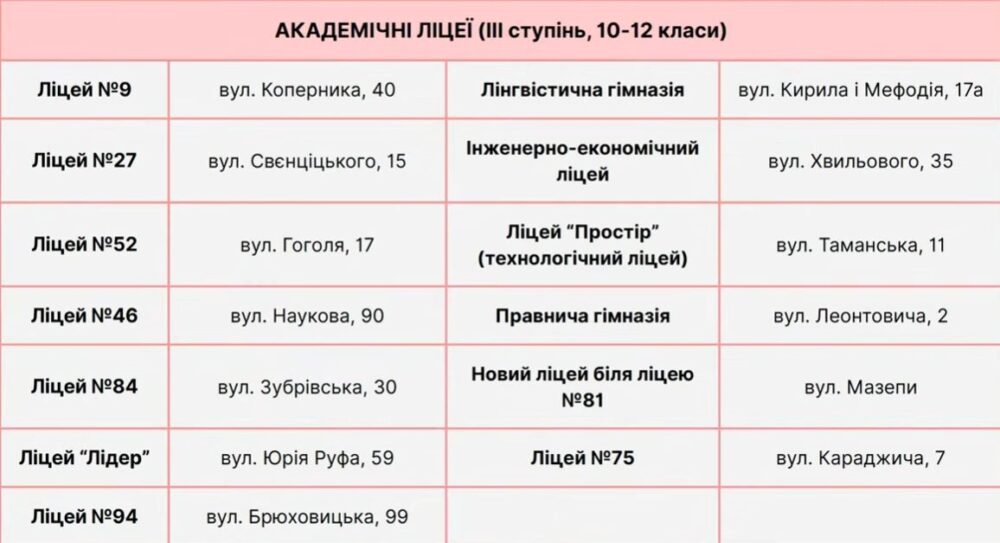 Академічні ліцеї, де навчатимуться з 10 по 12 клас