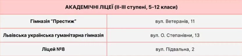 Академічні ліцеї, де навчатимуться з 5 по 12 клас