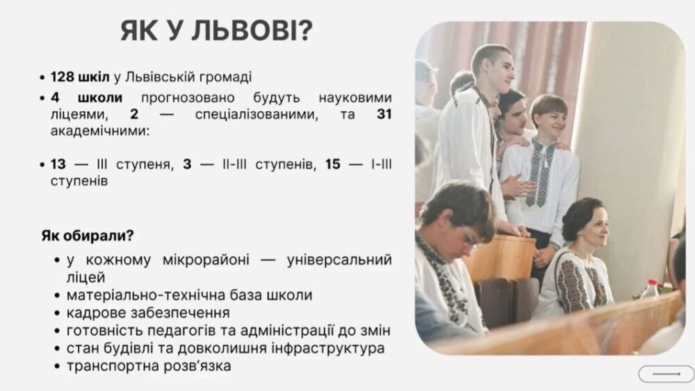Крім того, ліцей «Лідер», школа №84 та Львівська лінгвістична гімназія взяли участь у пілотному проєкті МОН щодо 12-річного навчання. Також директор департаменту освіти та культури ЛМР, зазначив, що тривають перемовини з міським департаментом міської мобільності та вуличної інфраструктури про підсилення маршрутів громадського транспорту до ліцеїв.