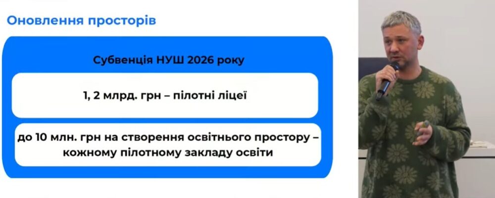 Також зараз триває відбір до пілотного проєкту, й перелік ліцеїв розширять до 150. «На 30 ліцеїв держава виділила субвенцію на облаштування просторів. Також виділять 1,2 мільярда гривень на пілотні навчальні заклади. Якщо ліцеїв до 150, то це приблизно до 10 мільйонів на створення освітнього простору», — зазначає Ігор Хворостяний.