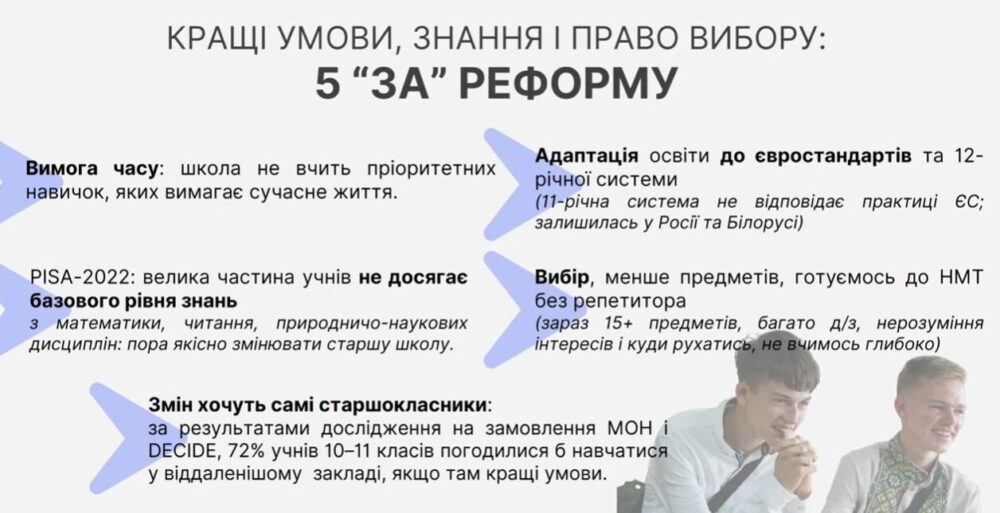 Андрій Закалюк, директор департаменту освіти та культури ЛМР, зокрема, зазначив, що учні, що закінчують 9 клас у 2027 році, обиратимуть, чи продовжувати навчання у профільному ліцеї до 12 класу, чи вступати до закладів профтехосвіти. Також, зазначив Андрій Закалюк, у 2029 році буде дуже мало вступників у виші, бо учні підуть у 12 клас.