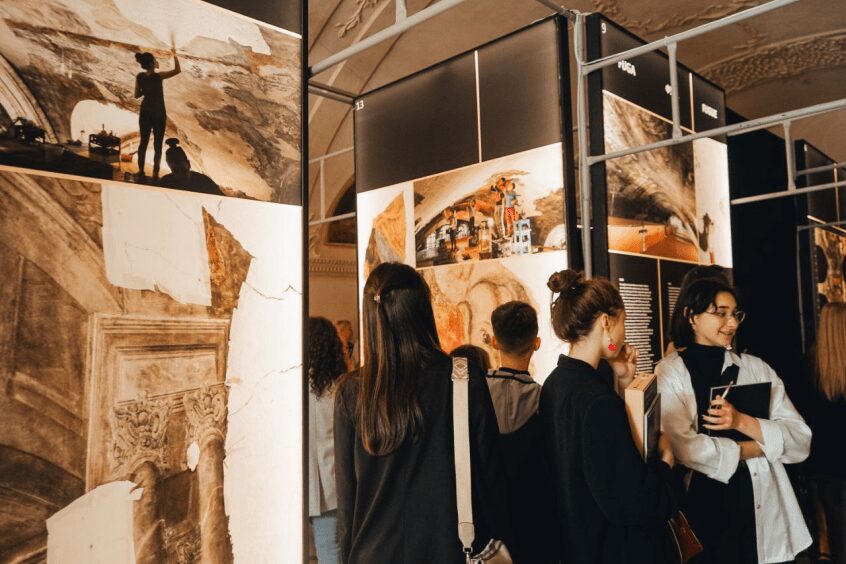 У музеї відображені етапи та результати реставрації Гарнізонного храму, що показують стани до, під час та після робіт.