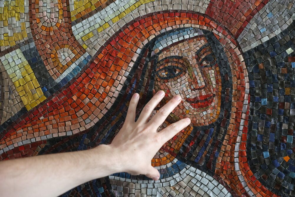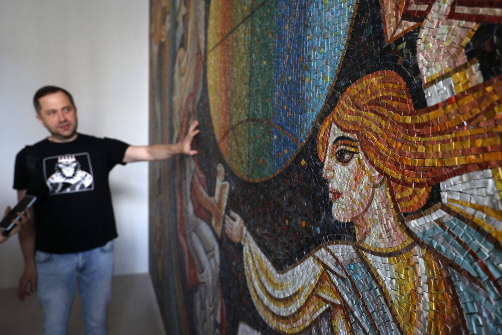 У Львові відновили знищену мозаїку «Інформаційний простір» у приміщенні колишнього видавництва «Вільна Україна», що на вулиці Володимира Великого, 2.