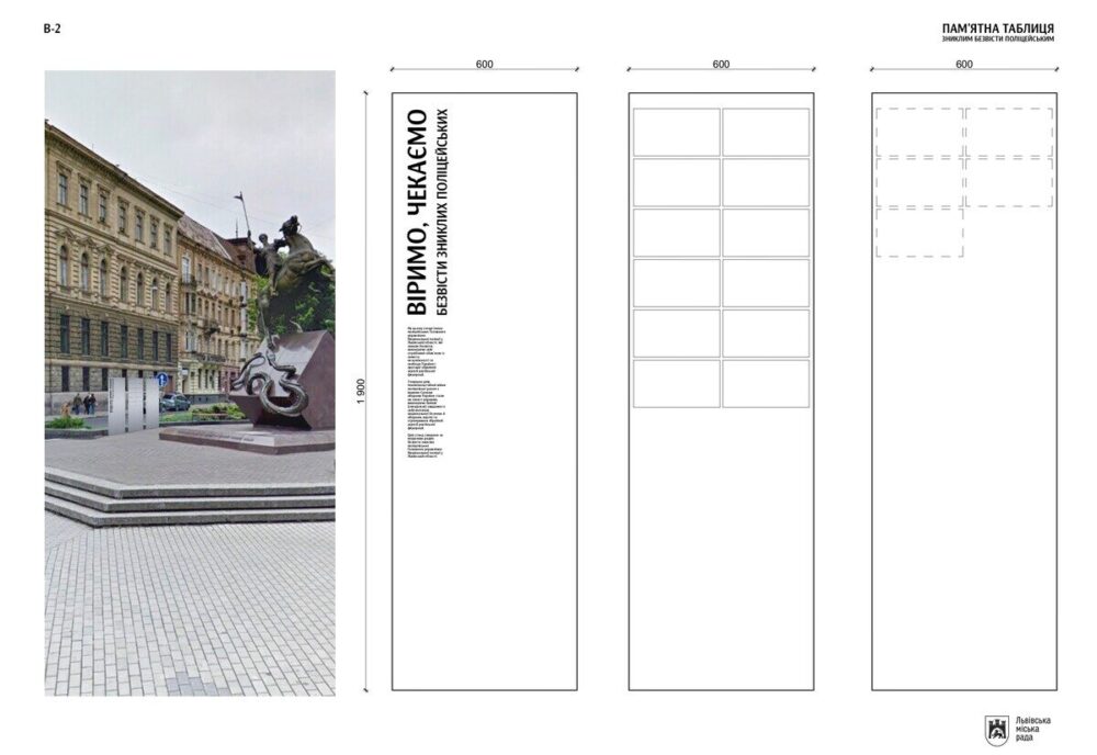Стелу встановлять навпроти Головного управління Національної поліції у Львівській області. Вона буде присвячена поліцейським, які проходили службу в підрозділах Національної поліції та стали на захист держави у складі спеціальних формувань. Рішення погоджене з родинами зниклих і представниками поліції.