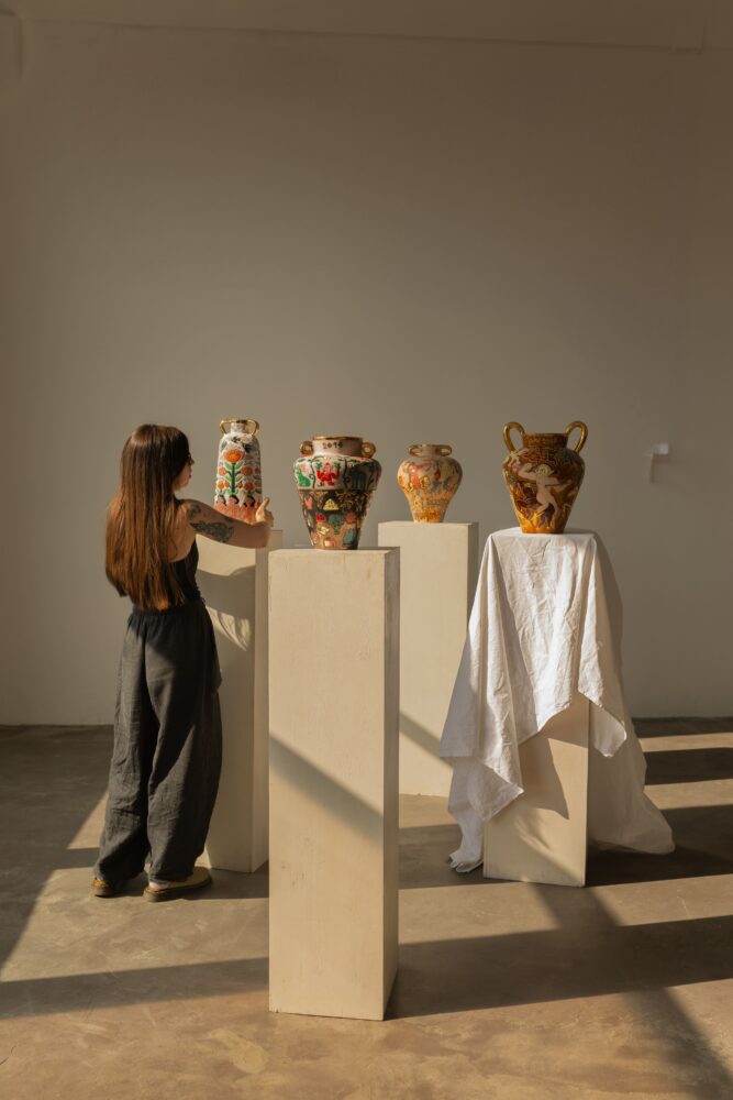 15 керамічних ваз та виробів створені протягом 2024 — 2025 року. Також буде представлений анімаційний фільм та інсталяція. Зокрема, в межах виставки триває збір-розіграш однієї із ваз, представлених на виставці. Зібрані кошти передадуть на потреби підрозділу ударних БПЛА, у якому служить наречений мисткині.