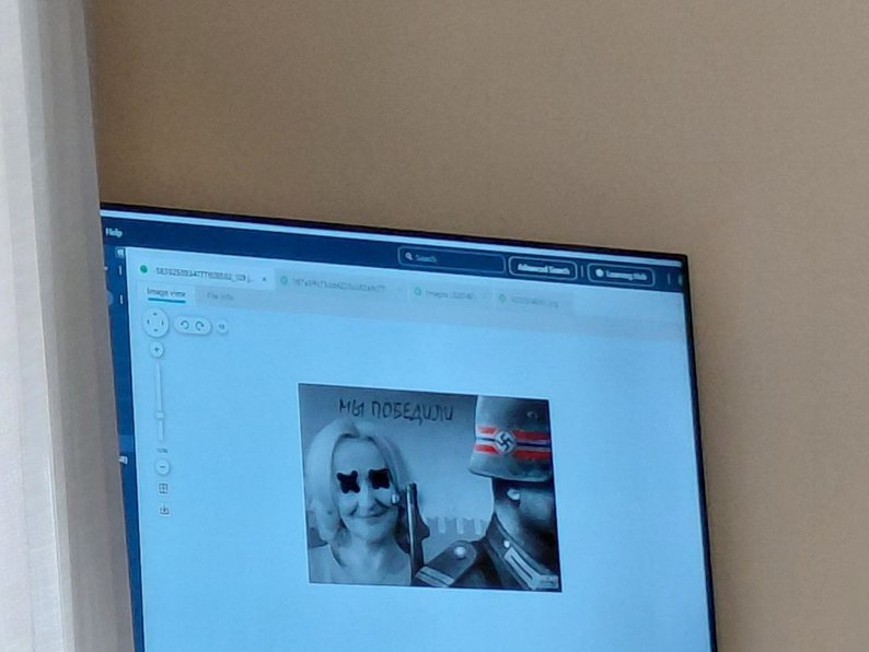 На телефоні виявили фото Ірини Фаріон з темношкірим чоловіком, а також зображення зі свастиками, символом Z, Гітлером, логотипом російської ФСБ. В’ячеслав Зінченко зауважив, що зі світлини не мають стосунку до його поглядів, це меми, які висміюють проросійську позицію, начебто «Азов» має спільне з Гітлером. А фото зі свастикою зберіг для любительського відеоролика.