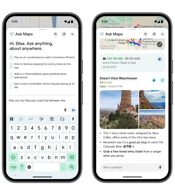 Однією з головних новинок стала функція Ask Maps. Вона дозволяє шукати локації не лише за назвою чи категорією, а й звичайними фразами – так, ніби користувач спілкується з чат-ботом. Наприклад, попросити знайти місце, де можна підзарядити телефон без черги, або освітлений тенісний корт для вечірньої гри. У відповідь сервіс показує не просто список локацій, а добірку точок на мапі з поясненням, чому вони відповідають запиту.