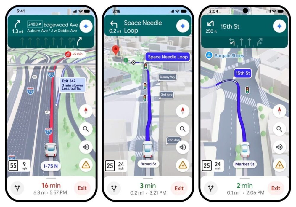 Друга частина оновлення стосується навігації для водіїв. У Google називають Immersive Navigation найбільшим оновленням навігації в Maps за більш ніж десять років. На маршруті з’явиться об’ємна 3D-візуалізація з будівлями, естакадами та рельєфом, а також підсвічування важливих елементів дороги – смуг руху, пішохідних переходів, світлофорів і знаків зупинки. Це має полегшити орієнтацію перед складними поворотами, з’їздами чи перестроюванням.