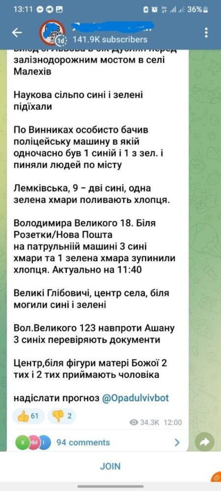 Цікаво вже стає, коли ти заходиш на цей канал, у цьому випадку я зайшла на найбільший ресурс інформування львів’ян про повістки і бачу повідомлення такого вигляду: