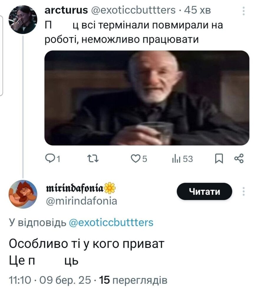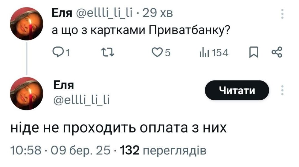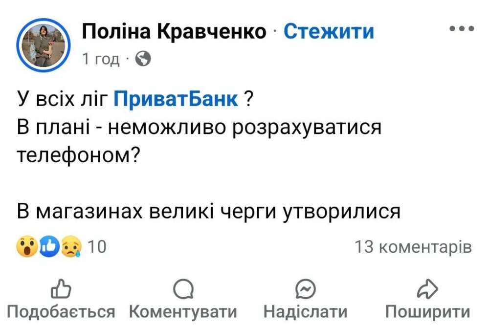 Здебільшого користувачі соцмереж пишуть про проблеми з оплатою картками ПриватБанку та про збій у роботі його терміналів.