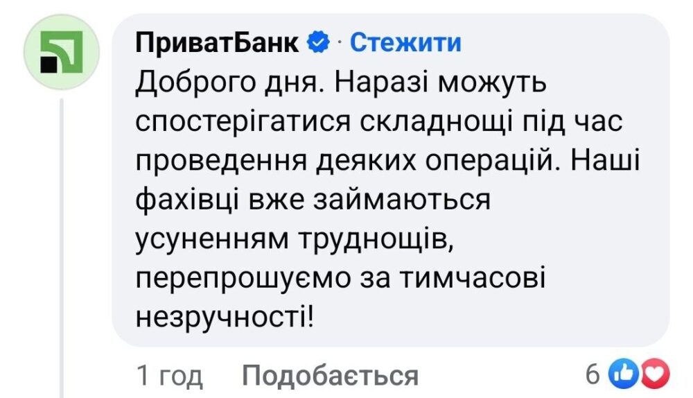 ПриватБанк прокоментував один з дописів та повідомив про можливі труднощі під час проведення деяких оерацій.