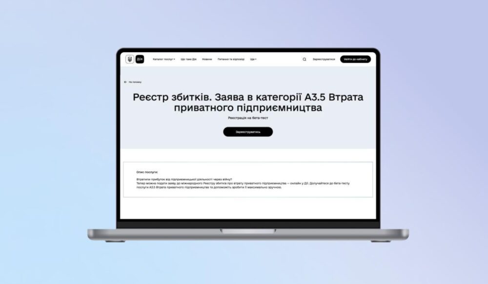 На порталі «Дія» відкрили бета-тестування нової категорії міжнародного Реєстру збитків – A3.5 «Втрата приватного підприємництва».