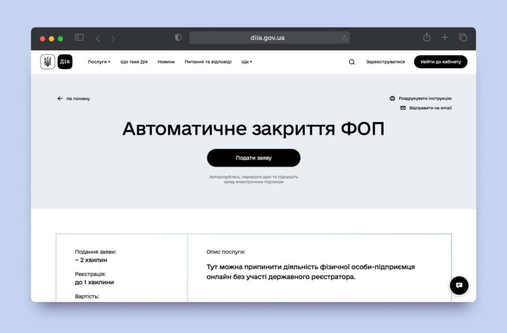 На порталі «Дія» знову доступна послуга автоматичного закриття ФОП.