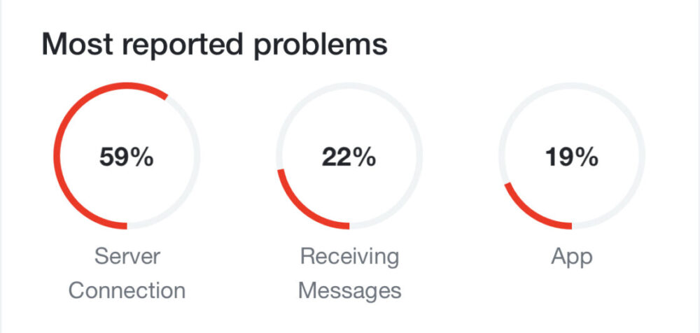 За інформацією Downdetector, користувачі жаліються на проблеми із підключенням до сервера, повідомленнями (отримання, відправка та сповіщення), а також загалом із додатком.
