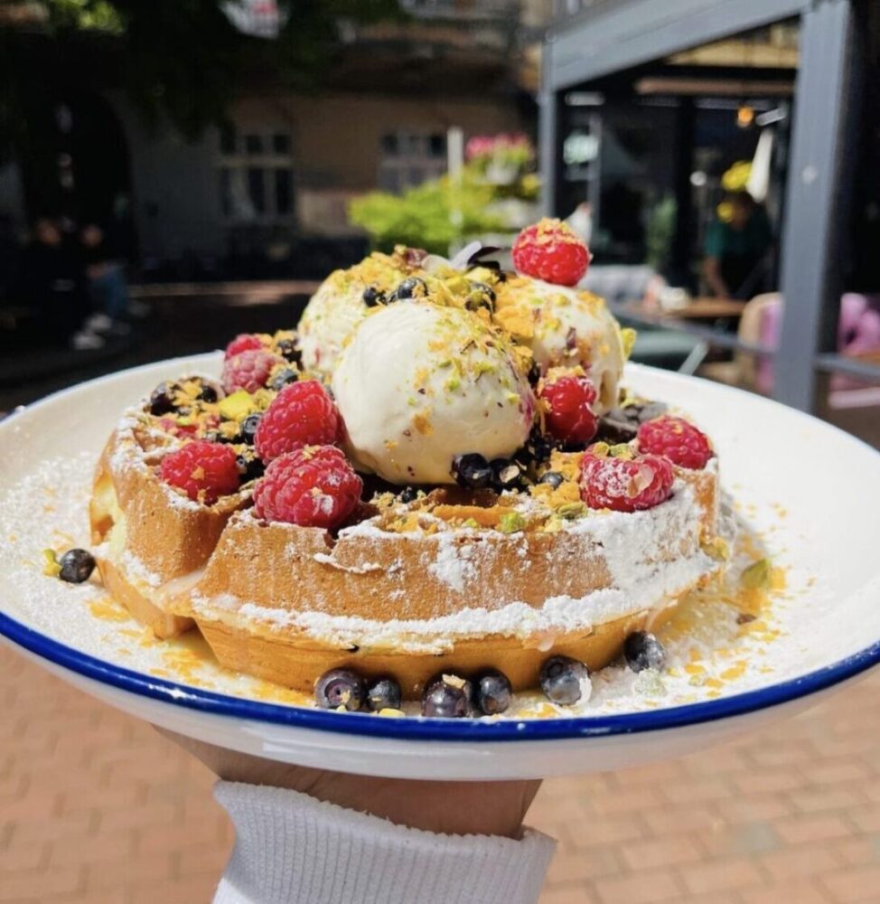 Сніданки та кава весь день. В меню багато видів більгійських вафель, сирничків, тости, кава та ще багато інших позицій. В закладі велика тераса, що виходить на криву липу та маленький внутрішній дворик.