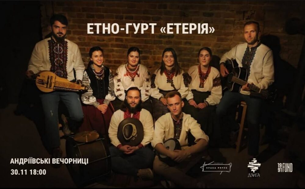 - Етномузика від українського гурту «Етерія» – автентичний народний спів у супроводі українських музичних інструментів;