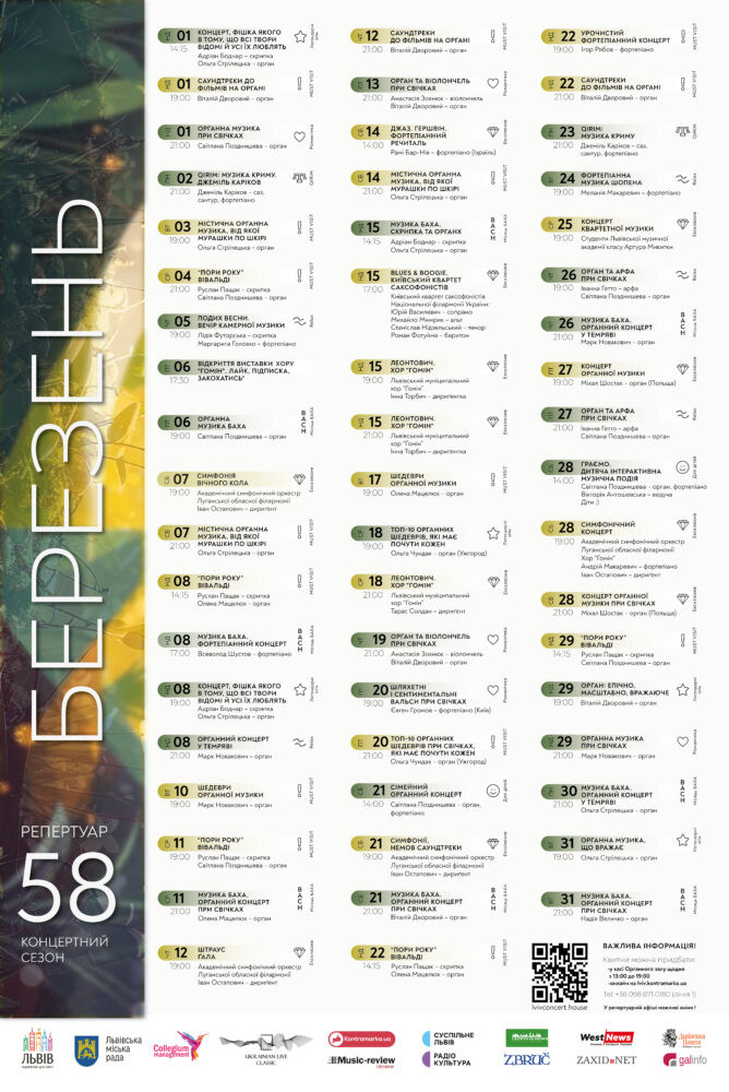 Цього місяця у Львівському органному залі заплановані 53 події. Серед них заплановані прем’єри, камерні програми від українських та закордонних музикантів, події для дітей, романтичні вечори при свічках та цикл концертів, присвячених Баху.
