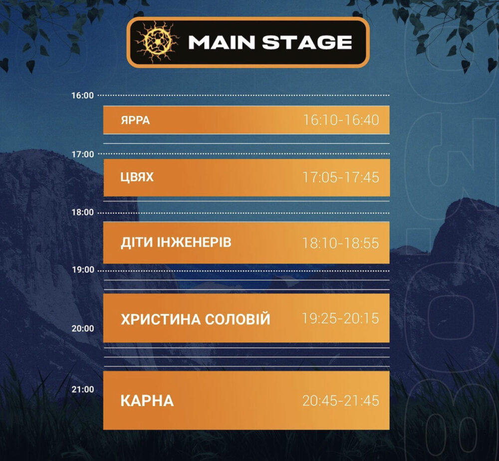 Розклад концертів та перелік артистів на сьогодні: